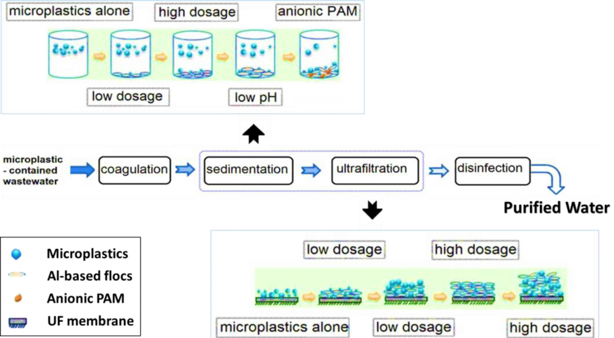 Figure 5: A coagulation, sedimentation, and ultrafiltration procedure for eliminating polyethylene microplastics from wastewater (modified from [48]).